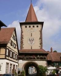 3 - Der Kinzigtorturm war der Haupteinlaß zur Stadt. Bei der 1991 begonnenen Renovierung wurde das Fallgatter wieder angebracht und der Turm als Museum eingerichtet (Wehrgeschichtliches Museum).